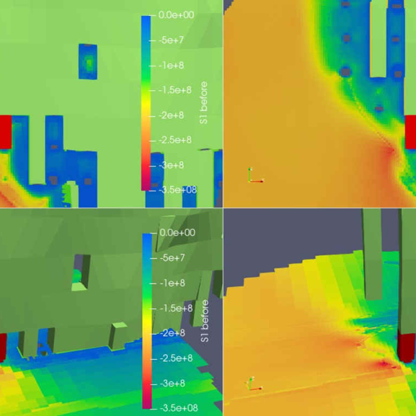 - We are constantly improving our tectonic initial stress installation scripts. The approach allows to initialise, when required, different stress magnitudes in different lithologies based on their stiffness, which will affect their reaction to nearby mining.